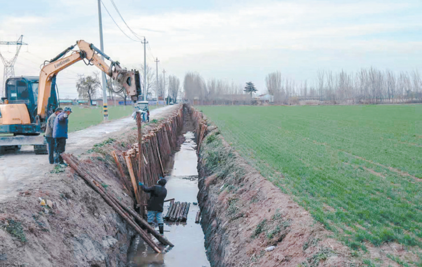 清理河渠,治理环境,建设美丽乡村。